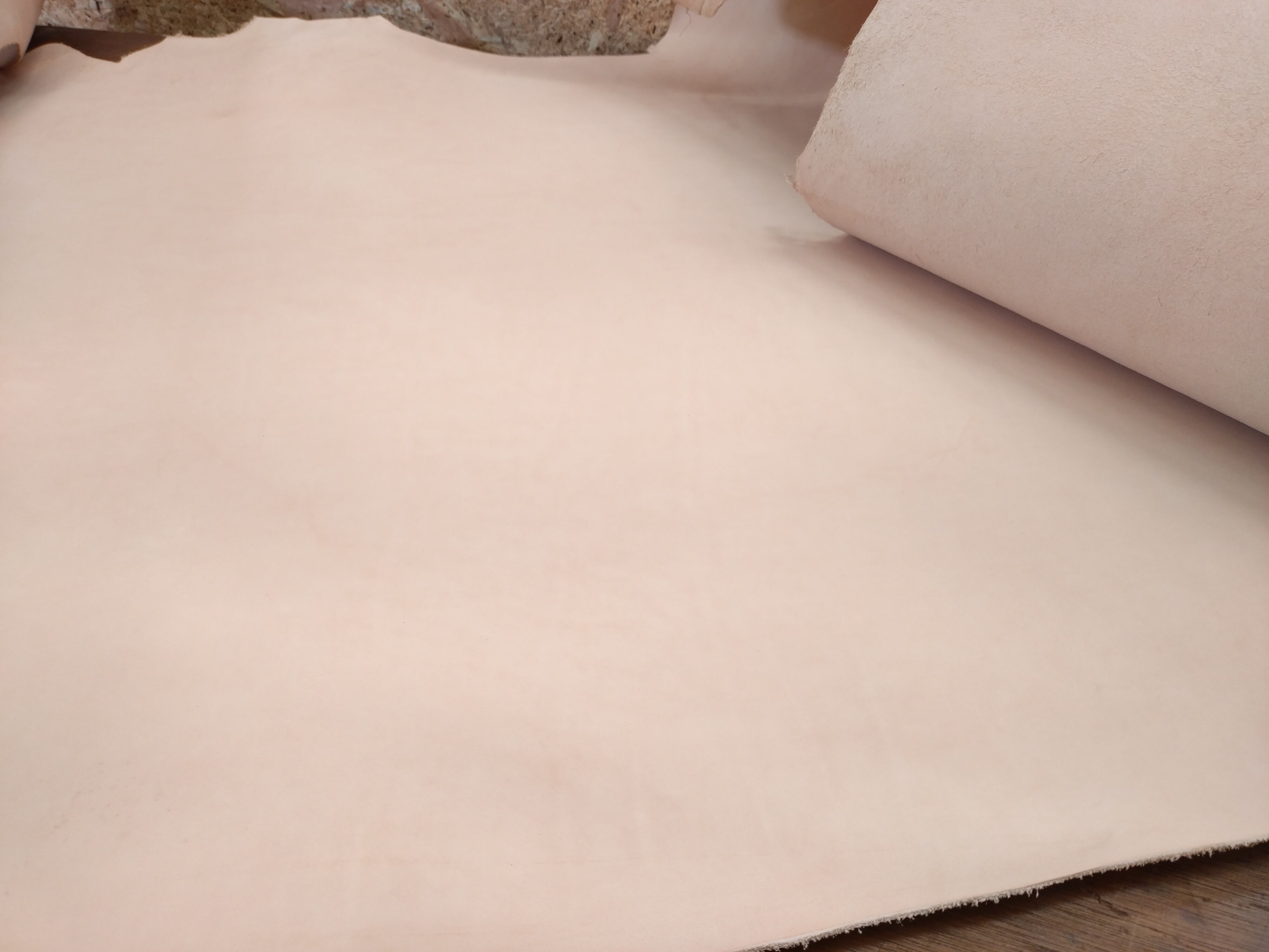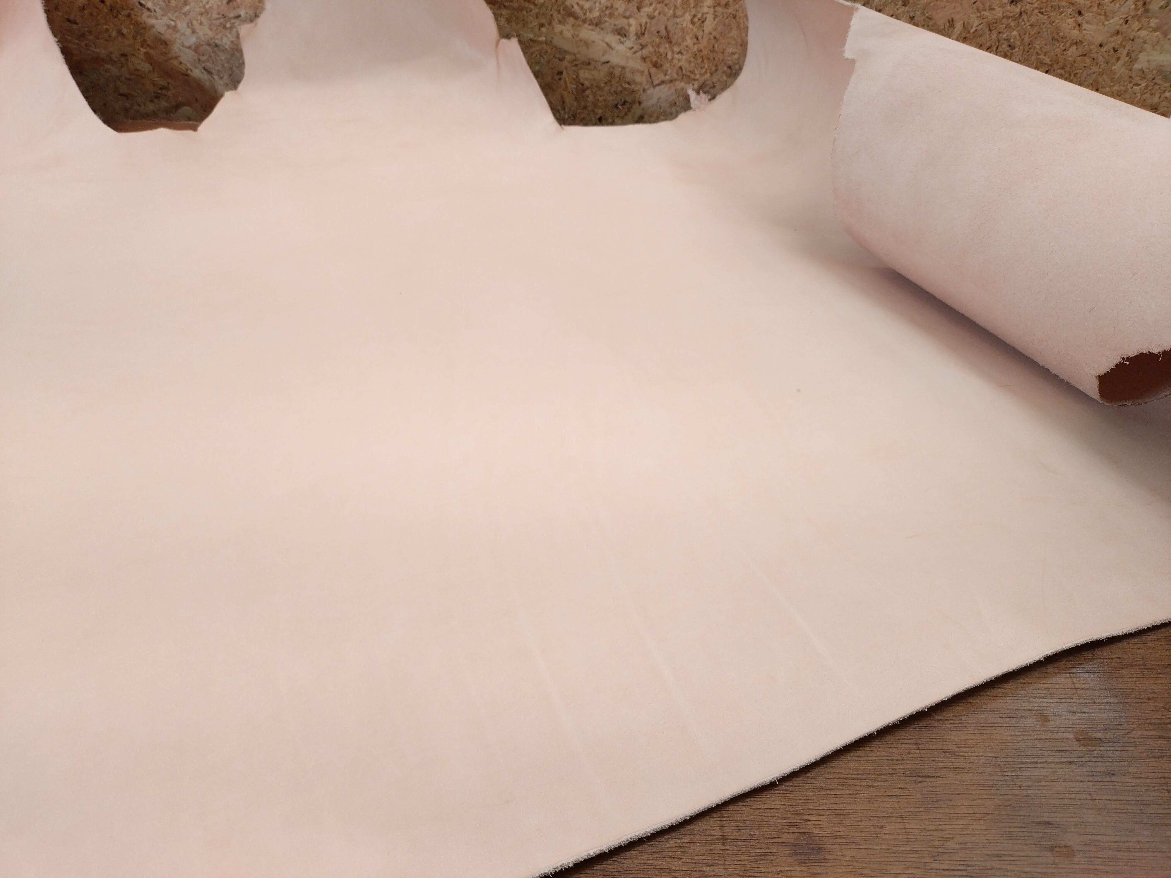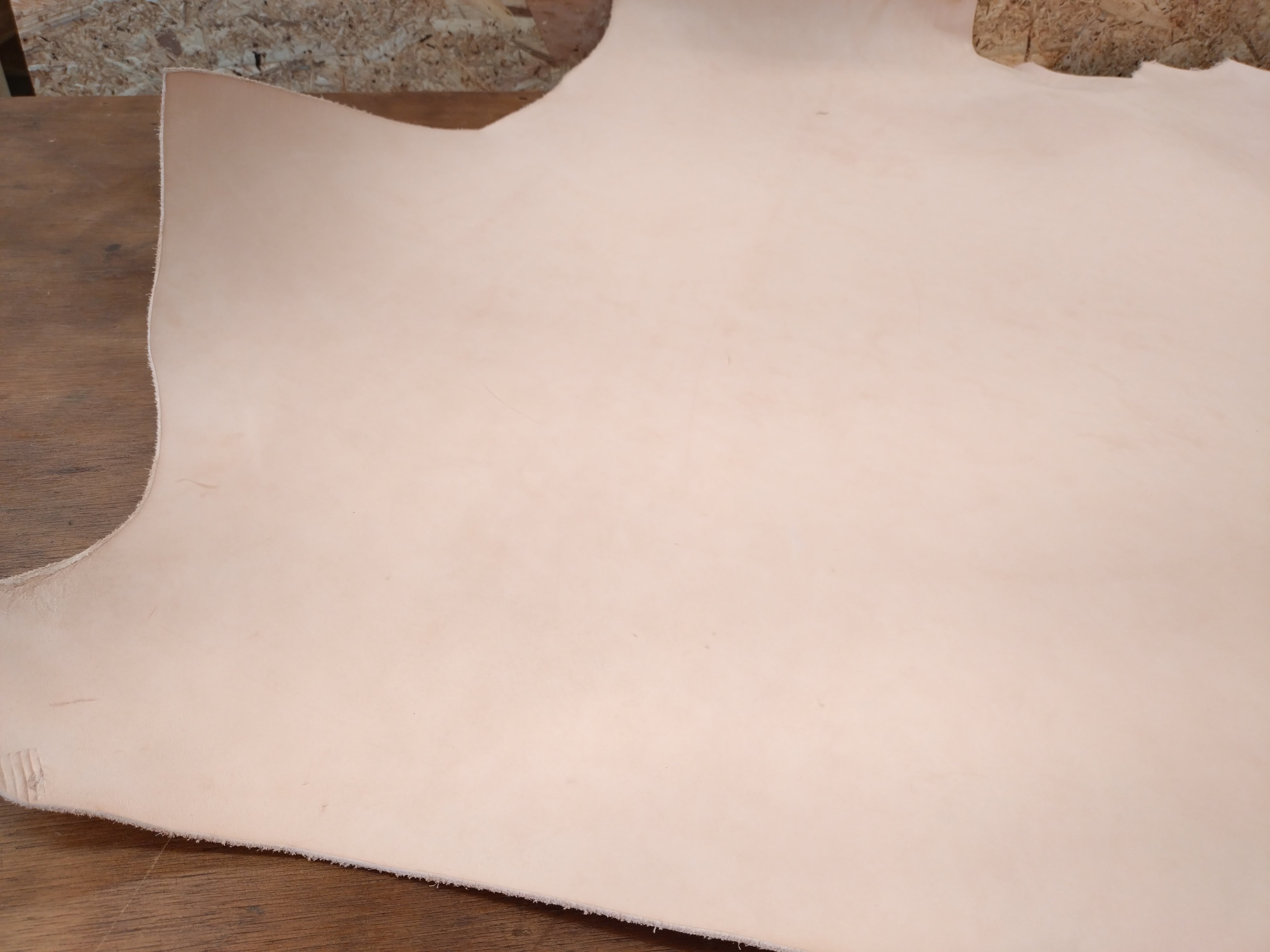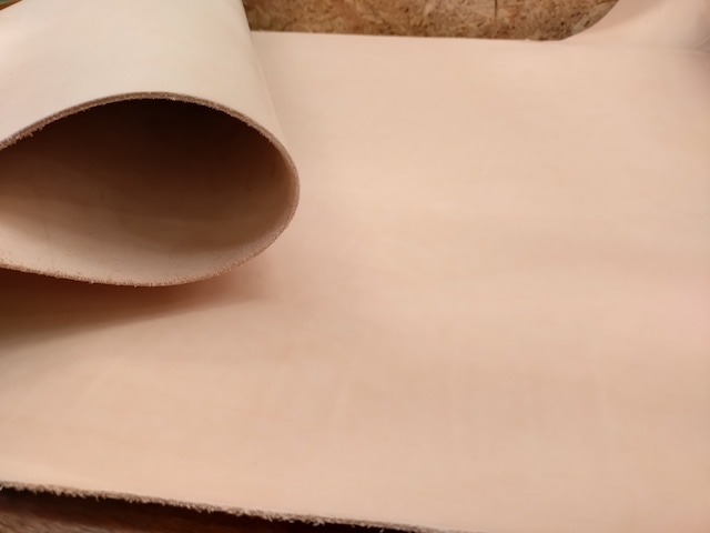 余計な加工をしていないため、革の持つ表情や個性(トラや血筋、シワなど)がそのまま残っており、作品に自然な風合いを与えてくれます。刻印・染色・カービングなどの加工もしやすく、レザークラフト初心者から上級者まで幅広くご使用いただけます。