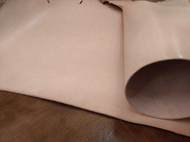 余計な加工をしていないため、革の持つ表情や個性(トラや血筋、シワなど)がそのまま残っており、作品に自然な風合いを与えてくれます。刻印・染色・カービングなどの加工もしやすく、レザークラフト初心者から上級者まで幅広くご使用いただけます。