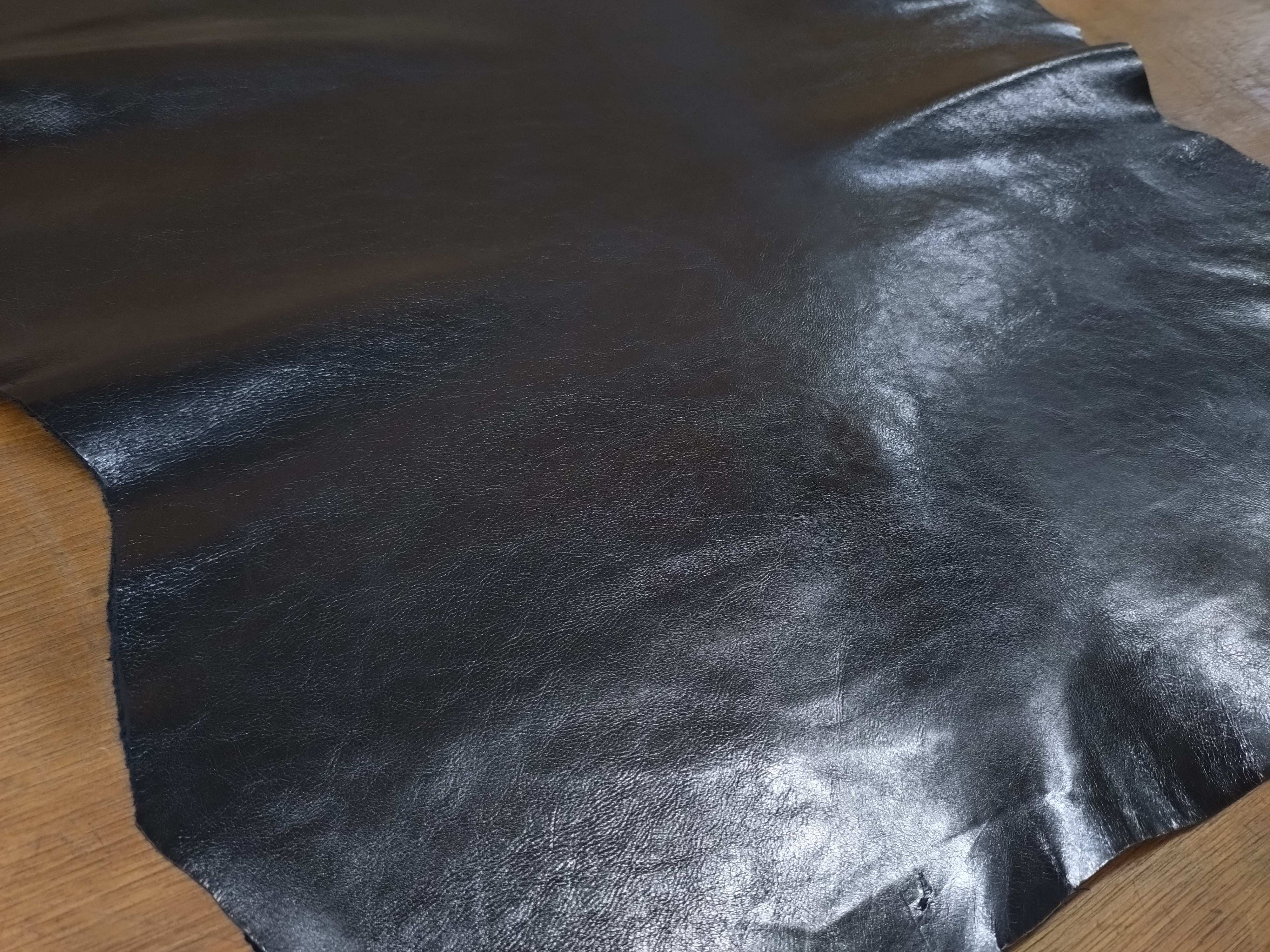 きめ細やかな銀面、揉み加工による天然シボ模様が特徴