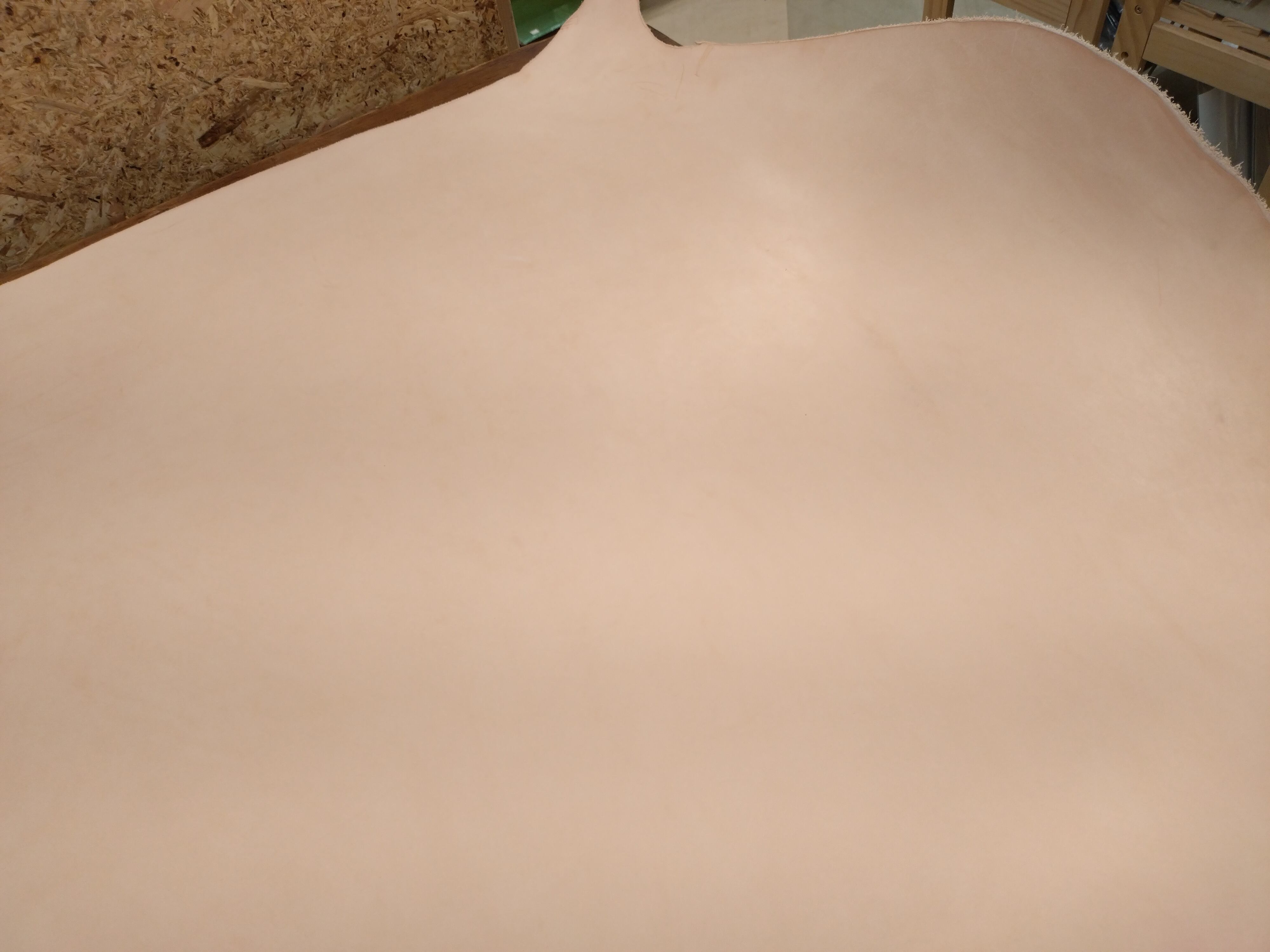 余計な加工をしていないため、革の持つ表情や個性(トラや血筋、シワなど)がそのまま残っており、作品に自然な風合いを与えてくれます。刻印・染色・カービングなどの加工もしやすく、レザークラフト初心者から上級者まで幅広くご使用いただけます。